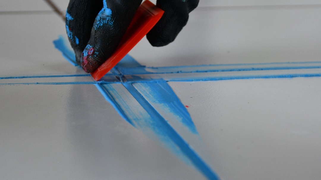 In general, the Proofab grouting paste should be applied under pressure between the joints of two tiles. Then, using the Proofab Special Grouting and Fillet Trowel, smooth the paste into the depth of the joints and level the surface with the tiles.
